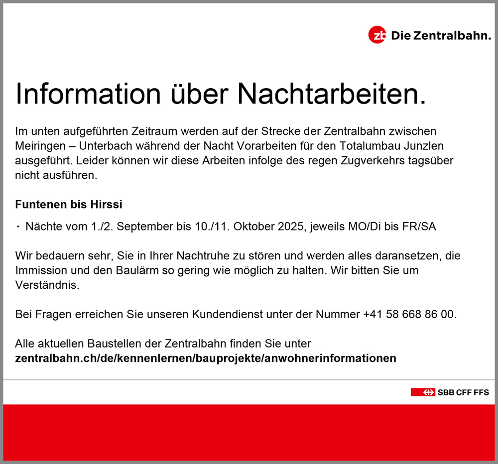 Zentralbahn - TU Junzeln 28.08.2025 - Information Nachtarbeit (PDF, 126.8 kB) | Download | 2 | Zentralbahn - TU Junzeln 28.08.2025 - Information Nachtarbeit |